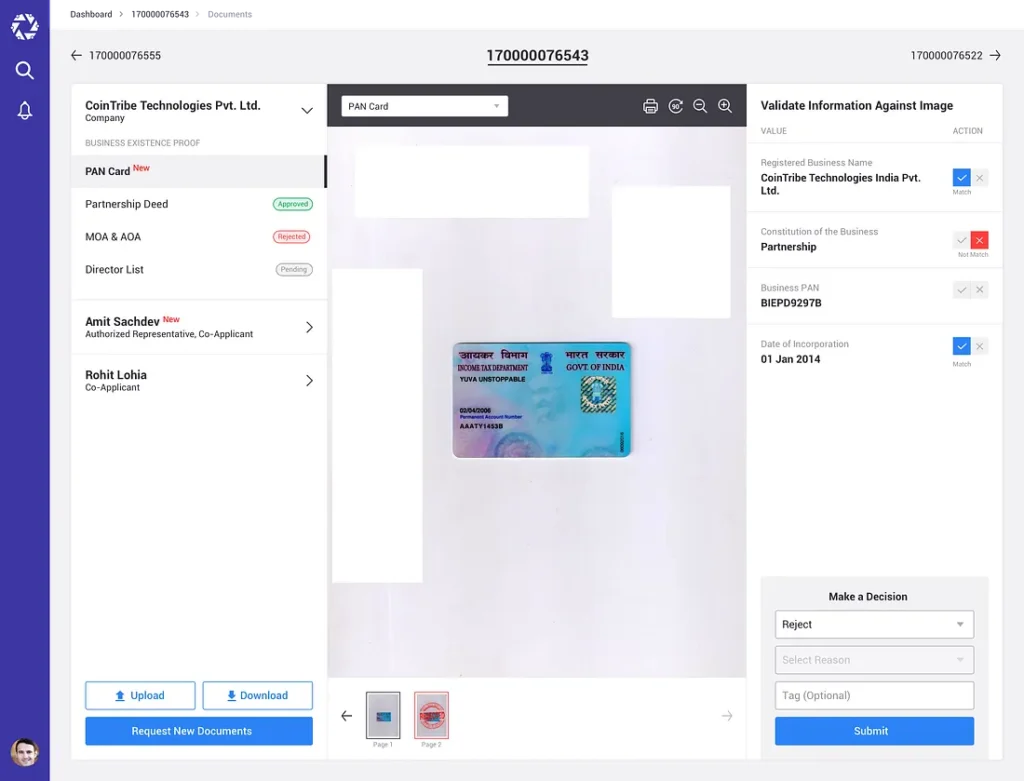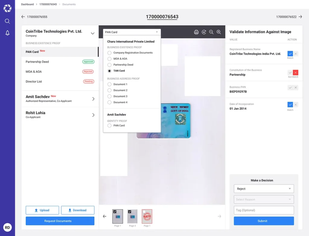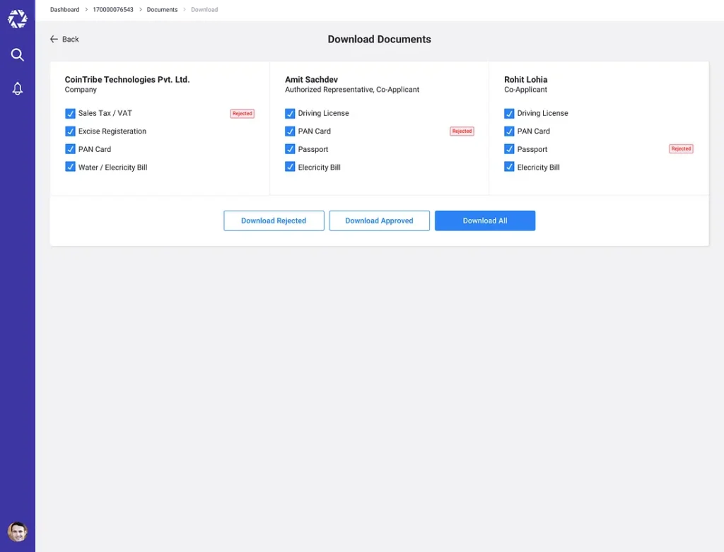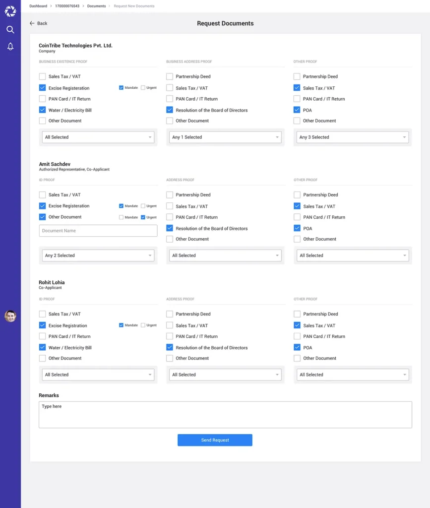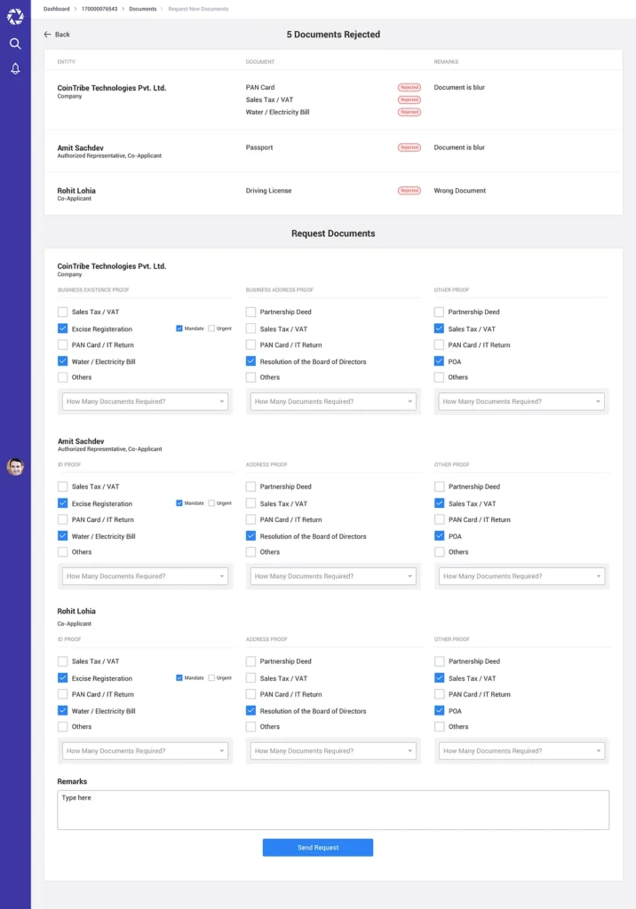 - Credit Dashboard: request documents, monitor progress, and approve/reject submissions from one place.